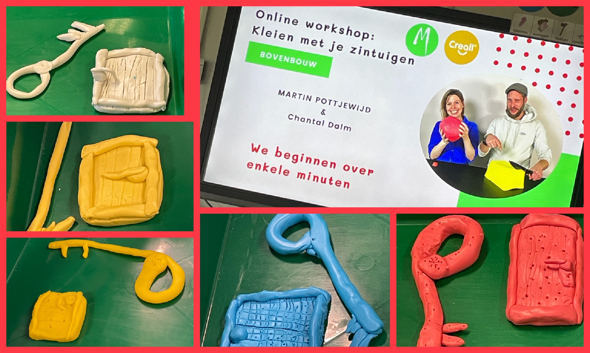 In groep rood hadden we een bijzondere middag. We hadden namelijk een online kleiworkshop, een echte webinar. We hebben een sleutel gemaakt en een deur. Helaas was het toen tijd